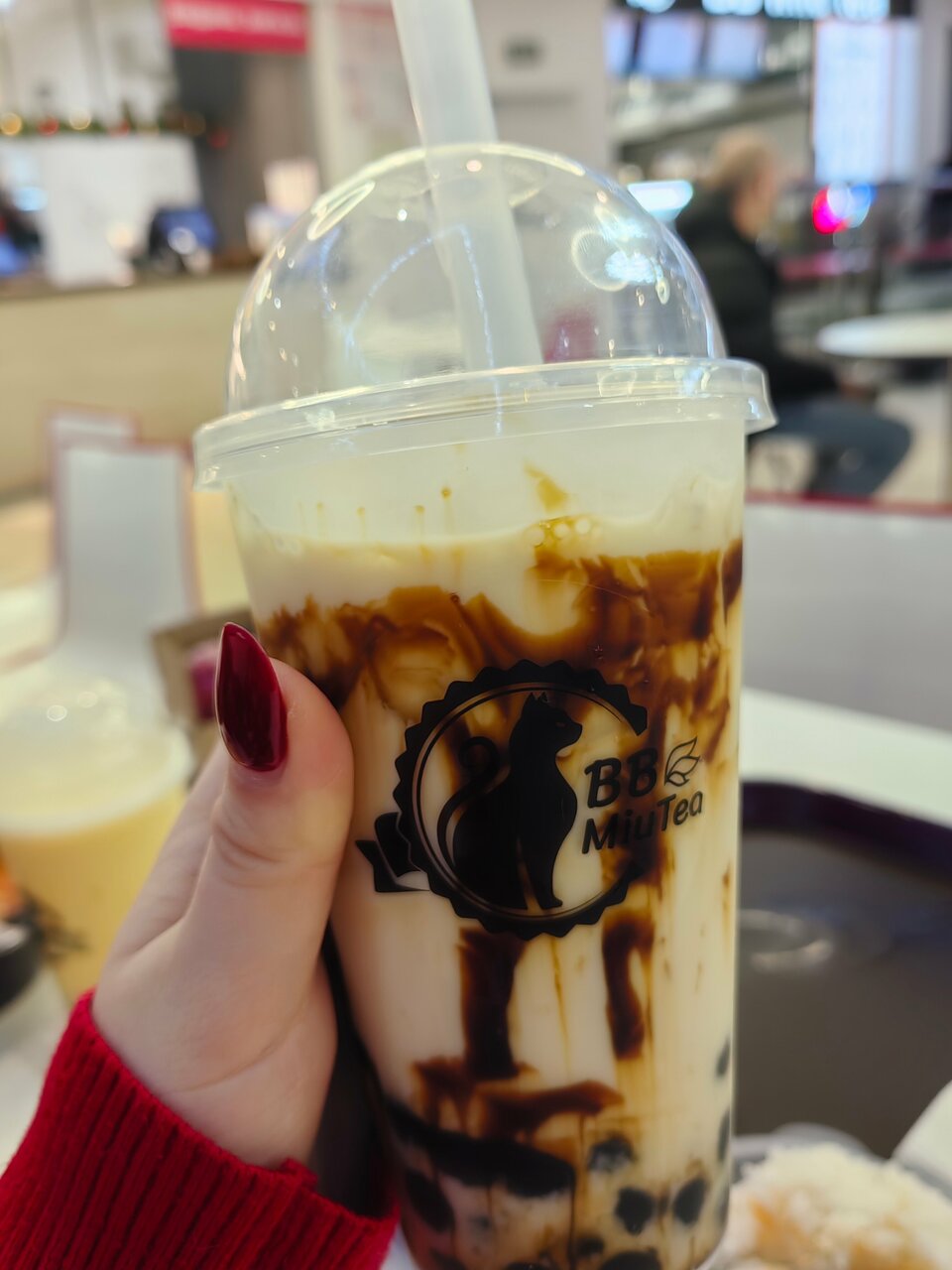 Очень вкусный бабл ти! Советую классический молочный и таро
